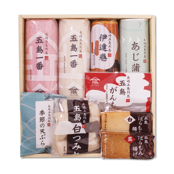 海産物・蒲鉾 【浜口水産】五島蒲鉾詰合せ 会員価格: (税込み) 通常価格: (税込み) 在庫: 商品コード: 25W031101 JANコード: メーカー直送 送料込みギフト | 年末年始ギフト 価格 5,130円(税込み) ※掲載価格は5%割引後の価格となります。 数量 - + 販売期間外のため注文いただけません。 この商品をシェアする 販売期間 2025/11/01 10:00~2025/12/08 00:00 五島一番蒲鉾(赤・白)、あじ蒲、伊達巻、五島つみれ(白)、季節の天ぷら、五島ばらもん揚げ(黒・白)、五島がんも 冷蔵20日 カテゴリーから選ぶ 生活雑貨 美容・健康食品 アロマ・フレグランス 紳士小物 ベビー・子ども用品 スイーツ カテゴリーから選ぶ 生活雑貨 美容・健康食品 アロマ・フレグランス 紳士小物 ベビー・子ども用品 スイーツ