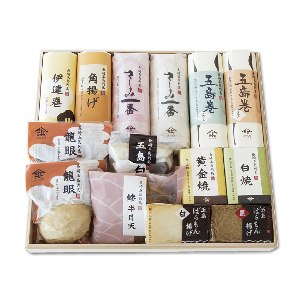 海産物・蒲鉾 【浜口水産】特選五島蒲鉾詰合せ 会員価格: (税込み) 通常価格: (税込み) 在庫: 商品コード: 25W031127 JANコード: メーカー直送 送料込みギフト | 年末年始ギフト 価格 12,312円(税込み) ※掲載価格は5%割引後の価格となります。 数量 - + 販売期間外のため注文いただけません。 この商品をシェアする 販売期間 2025/11/01 10:00~2025/12/08 00:00 さしみ一番蒲鉾(紅・白)、伊達巻、無でん粉五島巻(あじ・えそ)、無でん粉角揚げ、五島つみれ(白)、鯵半月天、五島ばらもん揚げ(黒・白)、龍眼×2、白焼、黄金焼 冷蔵10日 カテゴリーから選ぶ 生活雑貨 美容・健康食品 アロマ・フレグランス 紳士小物 ベビー・子ども用品 スイーツ カテゴリーから選ぶ 生活雑貨 美容・健康食品 アロマ・フレグランス 紳士小物 ベビー・子ども用品 スイーツ
