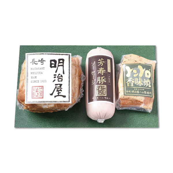 ハム・ミートギフト 【長崎明治屋ハム】明治屋伝統セット 会員価格: (税込み) 通常価格: (税込み) 在庫: 商品コード: 25W043061 JANコード: ながさき味自慢 | メーカー直送 送料込みギフト 価格 5,130円(税込み) ※掲載価格は5%割引後の価格となります。 数量 - + 販売期間外のため注文いただけません。 この商品をシェアする 販売期間 2025/11/01 10:00~2025/12/08 00:00 ロースハム320g・トントロ香味焼70g・芳寿豚ソーセージ130g 冷蔵40日 カテゴリーから選ぶ 生活雑貨 美容・健康食品 アロマ・フレグランス 紳士小物 ベビー・子ども用品 スイーツ カテゴリーから選ぶ 生活雑貨 美容・健康食品 アロマ・フレグランス 紳士小物 ベビー・子ども用品 スイーツ