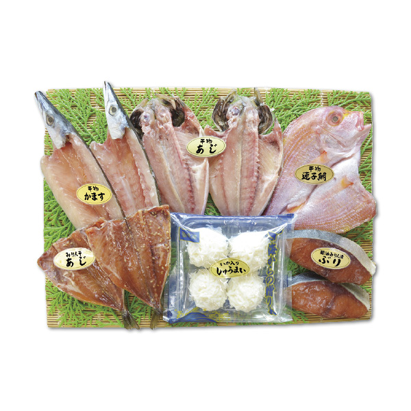 海産物・蒲鉾 【双葉水産】海鮮づくしいか入りしゅうまい詰合せ 会員価格: (税込み) 通常価格: (税込み) 在庫: 商品コード: 25W046116 JANコード: ながさき味自慢 | メーカー直送 送料込みギフト 価格 4,309円(税込み) ※掲載価格は5%割引後の価格となります。 数量 - + 販売期間外のため注文いただけません。 この商品をシェアする 販売期間 2025/11/01 10:00~2025/12/08 00:00 かます干物×2・ぶり醤油みりん漬×2・あじ干物×2・連子鯛干物×1・あじみりん干×2・いか入りしゅうまい4個×1冷凍60日 カテゴリーから選ぶ 生活雑貨 美容・健康食品 アロマ・フレグランス 紳士小物 ベビー・子ども用品 スイーツ カテゴリーから選ぶ 生活雑貨 美容・健康食品 アロマ・フレグランス 紳士小物 ベビー・子ども用品 スイーツ