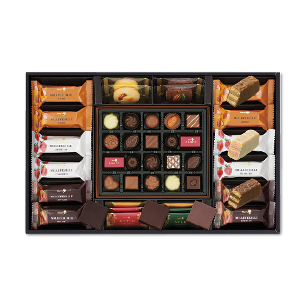 和洋菓子 【メリーチョコレート】エレガントギフト 会員価格: (税込み) 通常価格: (税込み) 在庫: 商品コード: 25W059048 JANコード: 価格 3,078円(税込み) ※掲載価格は5%割引後の価格となります。 数量 - + 販売期間外のため注文いただけません。 この商品をシェアする 販売期間 2025/11/01 10:00~2025/12/08 00:00 ファンシーチョコレート20個、プレーンチョコレート6枚、ミルフィーユ12個、カカオサブレ4枚 常温120日 カテゴリーから選ぶ 生活雑貨 美容・健康食品 アロマ・フレグランス 紳士小物 ベビー・子ども用品 スイーツ カテゴリーから選ぶ 生活雑貨 美容・健康食品 アロマ・フレグランス 紳士小物 ベビー・子ども用品 スイーツ
