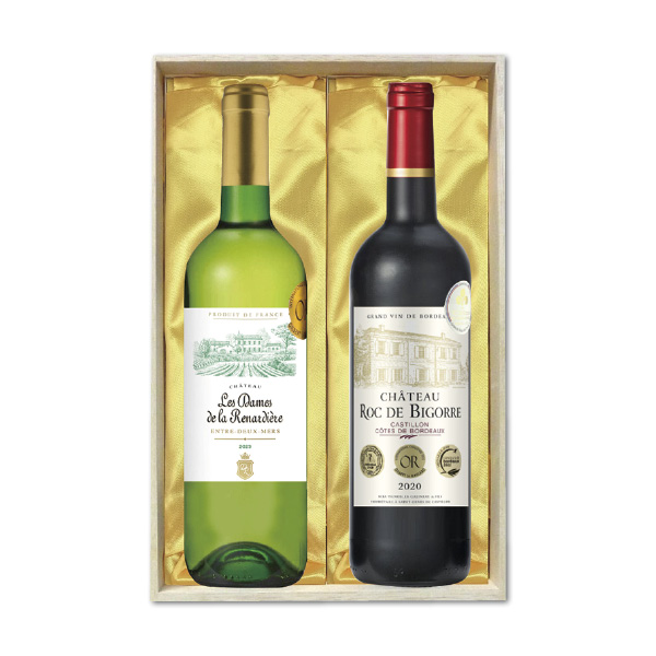 長崎県産酒・洋酒 【フランスボルドー金賞受賞】紅白ワイン2本セット(木箱入) 会員価格: (税込み) 通常価格: (税込み) 在庫: 商品コード: 25W083020 JANコード: 価格 5,225円(税込み) ※掲載価格は5%割引後の価格となります。 数量 - + 販売期間外のため注文いただけません。 この商品をシェアする 注文年齢制限 20歳 ~ 注文手続き画面にて、生年月日を入力いただきます。 販売期間 2025/11/01 10:00~2025/12/08 00:00 CH レ ダム ド ラ ルナルディエール2023(白・辛口)、CH ロック ド ビゴール2020(赤・ミディアム)各750ml×1 カテゴリーから選ぶ 生活雑貨 美容・健康食品 アロマ・フレグランス 紳士小物 ベビー・子ども用品 スイーツ カテゴリーから選ぶ 生活雑貨 美容・健康食品 アロマ・フレグランス 紳士小物 ベビー・子ども用品 スイーツ