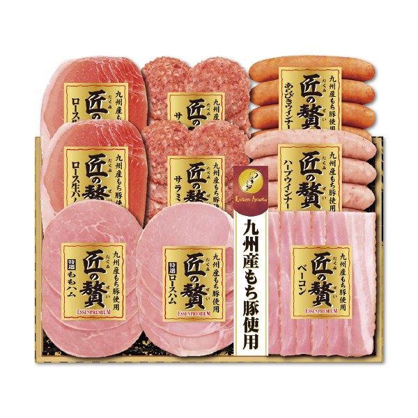 ハム・ミートギフト 【エッセンハウス】匠の贅/エッセンプレミアム 会員価格: (税込み) 通常価格: (税込み) 在庫: 商品コード: 25W090069 JANコード: メーカー直送 送料込みギフト 価格 5,130円(税込み) ※掲載価格は5%割引後の価格となります。 数量 - + 販売期間外のため注文いただけません。 この商品をシェアする 販売期間 2025/11/01 10:00~2025/12/08 00:00 特選ロース36g、特選もも40g、あらびきウインナー70g、ハーブウインナー70g、サラミ36g×2、ベーコン40g、生ハム32g×2 冷蔵60日 カテゴリーから選ぶ 生活雑貨 美容・健康食品 アロマ・フレグランス 紳士小物 ベビー・子ども用品 スイーツ カテゴリーから選ぶ 生活雑貨 美容・健康食品 アロマ・フレグランス 紳士小物 ベビー・子ども用品 スイーツ
