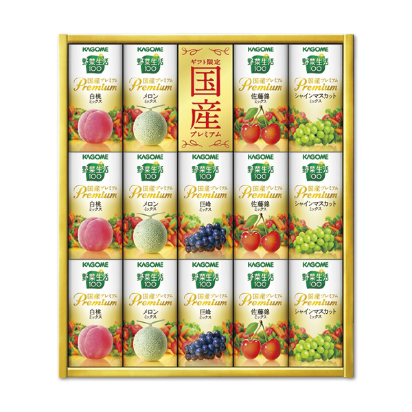 飲料水 【カゴメ】<国産プレミアム>野菜生活ギフト 会員価格: (税込み) 通常価格: (税込み) 在庫: 商品コード: 25W110108 JANコード: 価格 3,078円(税込み) ※掲載価格は5%割引後の価格となります。 数量 - + 販売期間外のため注文いただけません。 この商品をシェアする 販売期間 2025/11/01 10:00~2025/12/08 00:00 白桃ミックス・メロンミックス・佐藤錦ミックス・シャインマスカットミックス×各3本(各125ml)、巨峰ミックス×2本(125ml) 常温1年6ヶ月 カテゴリーから選ぶ 生活雑貨 美容・健康食品 アロマ・フレグランス 紳士小物 ベビー・子ども用品 スイーツ カテゴリーから選ぶ 生活雑貨 美容・健康食品 アロマ・フレグランス 紳士小物 ベビー・子ども用品 スイーツ