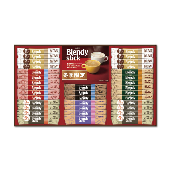 コーヒー・紅茶・銘茶 【AGF】ブレンディスティックウィンターギフト 会員価格: (税込み) 通常価格: (税込み) 在庫: 商品コード: 25W112119 JANコード: 価格 3,078円(税込み) ※掲載価格は5%割引後の価格となります。 数量 - + 販売期間外のため注文いただけません。 この商品をシェアする 販売期間 2025/11/01 10:00~2025/12/08 00:00 カフェオレ×6、カフェオレ甘さなし×3、紅茶オレ×4、ヘーゼルナッツオレ×6、リッチミルクカフェオレ×8、濃厚ほうじ茶オレ×8 常温2年1ヶ月 カテゴリーから選ぶ 生活雑貨 美容・健康食品 アロマ・フレグランス 紳士小物 ベビー・子ども用品 スイーツ カテゴリーから選ぶ 生活雑貨 美容・健康食品 アロマ・フレグランス 紳士小物 ベビー・子ども用品 スイーツ