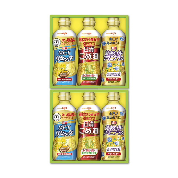 食用油・調味料 【日清オイリオ】ヘルシーオイルギフト 会員価格: (税込み) 通常価格: (税込み) 在庫: 商品コード: 25W126047 JANコード: 価格 3,078円(税込み) ※掲載価格は5%割引後の価格となります。 数量 - + 販売期間外のため注文いただけません。 この商品をシェアする 販売期間 2025/11/01 10:00~2025/12/08 00:00 日清MCTリセッタ350gPET×2、日清健康オイルアマニプラス350gPET×2、日清こめ油350gPET×2常温2年1ヶ月 カテゴリーから選ぶ 生活雑貨 美容・健康食品 アロマ・フレグランス 紳士小物 ベビー・子ども用品 スイーツ カテゴリーから選ぶ 生活雑貨 美容・健康食品 アロマ・フレグランス 紳士小物 ベビー・子ども用品 スイーツ